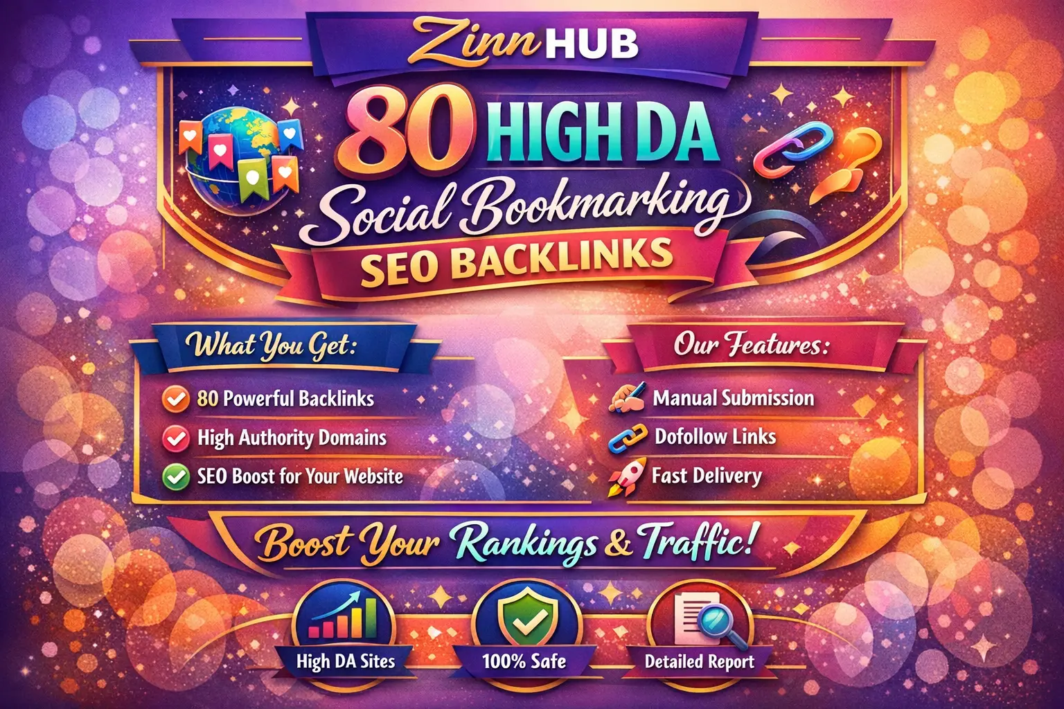 In this Zinn, I will create high DA social bookmarking SEO backlinks and link building services. All links will be exceptionally strong and permanent. The most effective way to achieve Google rankings for your site is through quality backlinks that enable you to rank highly on Google. This approach is tremendously beneficial for your website's ranking performance. Order now for manual high DA social bookmarking SEO backlinks and professional link building for your website.