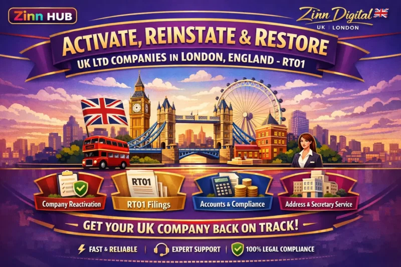 Has your **UK company been struck off or dissolved**? Zinn Digital ™ specialises in **restoring businesses to active status**, ensuring a smooth and fully compliant reinstatement process. Whether your company was removed due to **non-compliance, an invalid registered address, or overdue filings**, we provide expert assistance to bring it back on track from our London, England base.