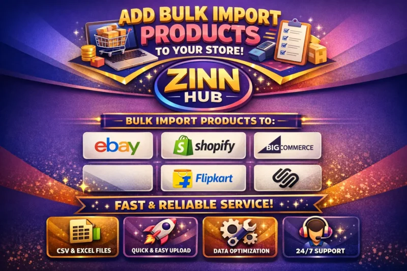 I am Zinn Digital ™, With more than 2 years of experience in SEO Product Listing. I can quickly Upload products, Import bulk products or single products on Shopify, eBay, woocommerce, bigcommerce, Flipkart, Wayfair, and more with details. I can create Bulk CSV file listings import on Shopify, eBay, Woocommerce, etc. Based in London, England, we provide professional e-commerce solutions.