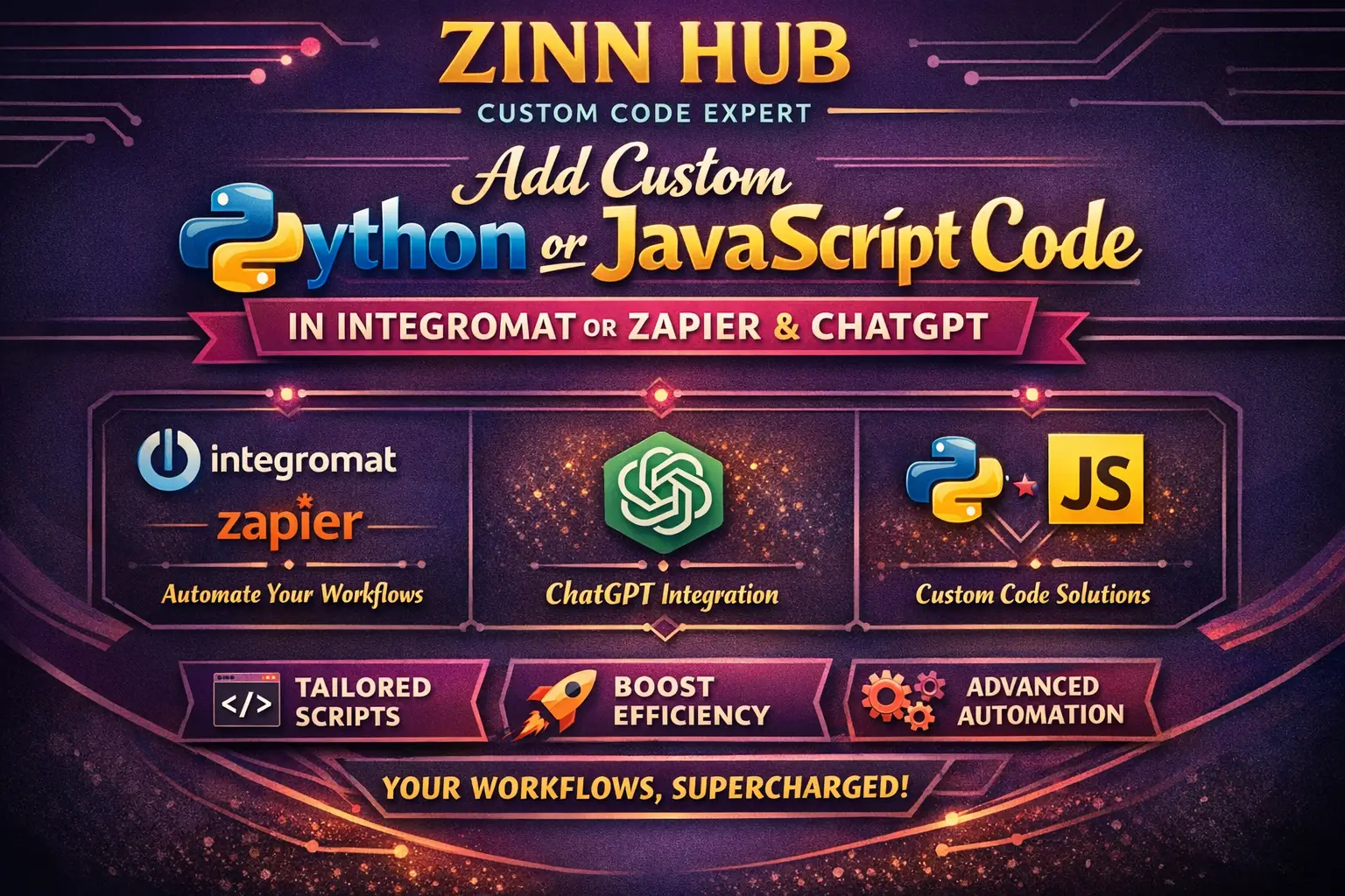 Using Integromat and an external service, I can include custom code. The code is not included in the Zinn. But if needed, you can purchase the code add-on and I'll include the code as well.