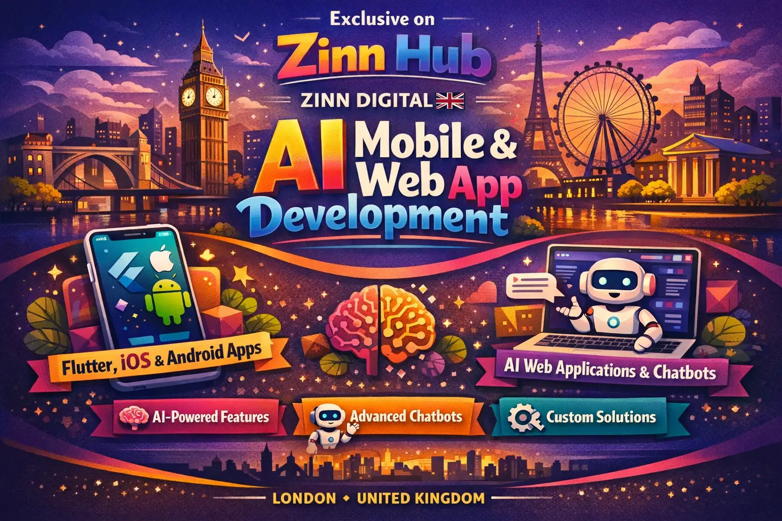 Zinn Digital ™ are professional mobile app developers based in London, England, with expertise in Flutter, React Native, and AI integration. Whether you're launching a next-gen startup, automating customer support with AI chatbots, or building a smart web app, we bring your vision to life with scalable, intuitive, and future-ready solutions.
