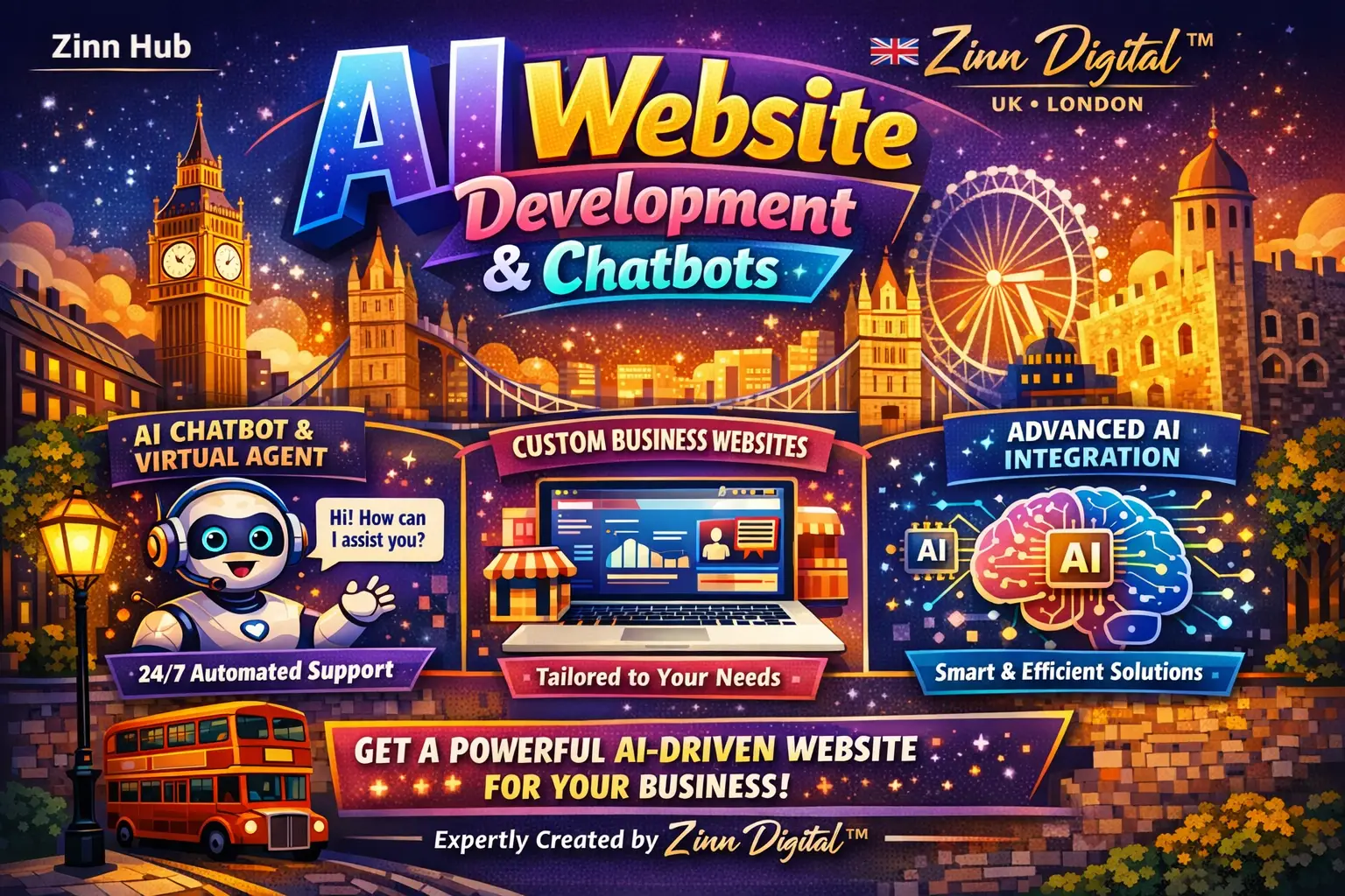 Transform your digital presence with our professional web development and AI chatbot integration services. Contact Zinn Digital ™ today to discuss your project requirements and receive a bespoke solution that drives real business growth.