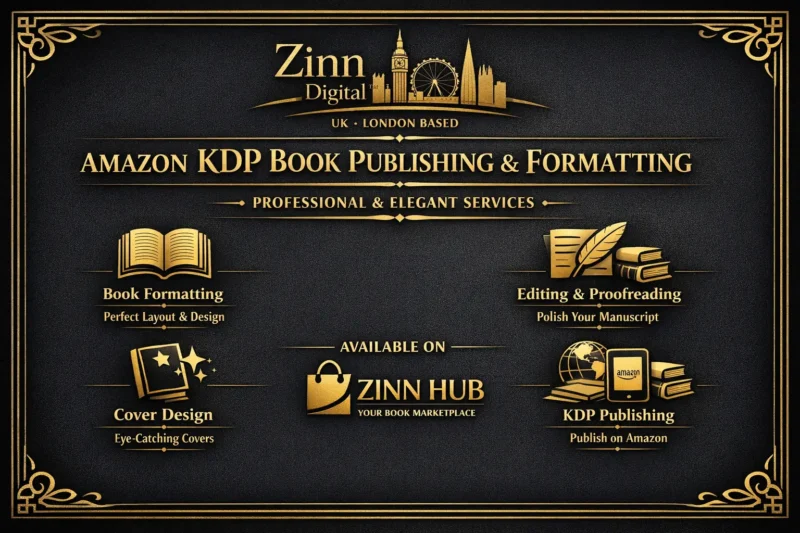 Welcome to our **Premium Amazon KDP Book Publishing and Formatting Service**. If you're looking to publish your book in multiple formats including Kindle eBook, paperback, and hardcover, then Zinn Digital™ offers the complete solution. We specialise in editing and formatting books for Amazon KDP and other self-publishing platforms such as Draft2Digital, Kobo, Lulu, ClickBank and many more.