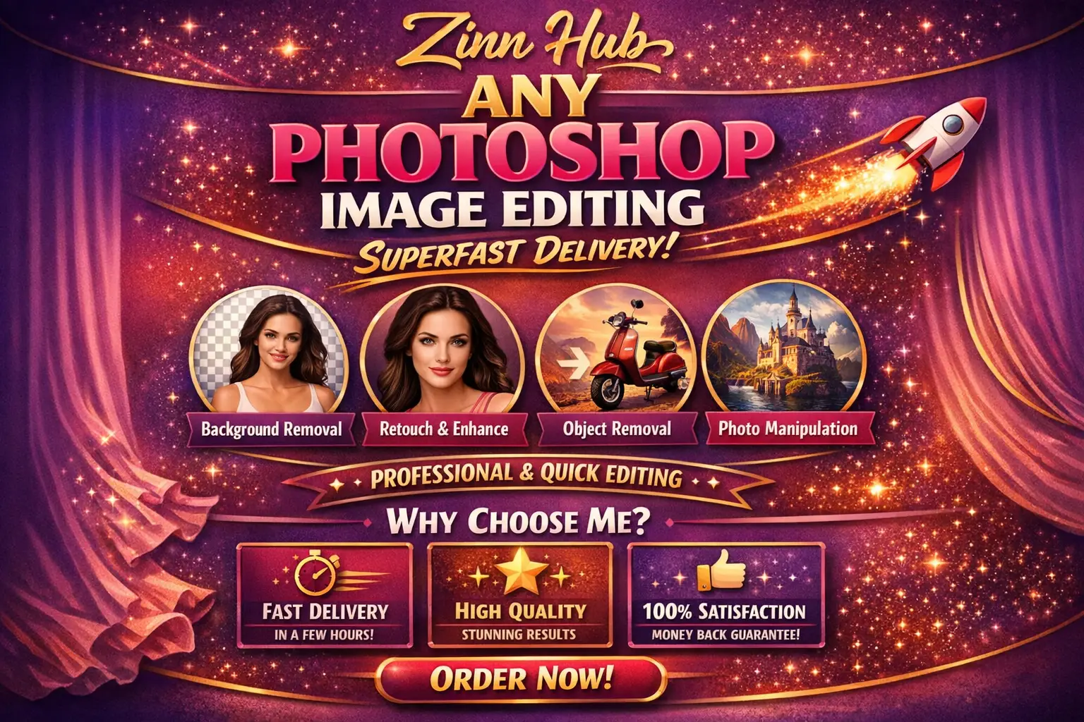 I'm from Zinn Digital ™, A professional graphic designer with over 5 years of experience and an expert in Adobe Photoshop. Based in London, England, I offer high-quality photo editing and AI image fixing services tailored to your needs. I deliver clean, natural, and professional results from enhancing portraits to correcting AI-generated photos.