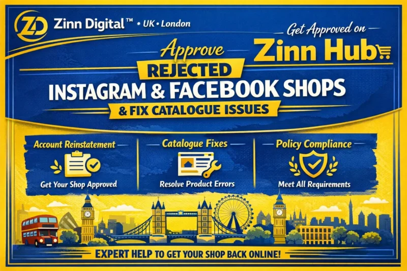Zinn Digital ™ will set up and approve your rejected Facebook and Instagram shops, as well as fix any rejected shops, integrate them with your online store, and add your products to your shops.