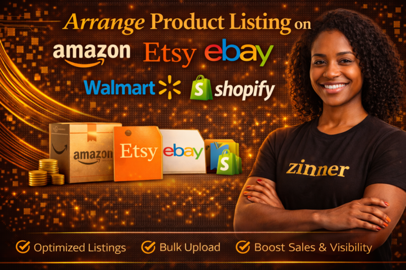Arrange Product Listing on Amazon, Etsy, eBay, Walmart & Shopify