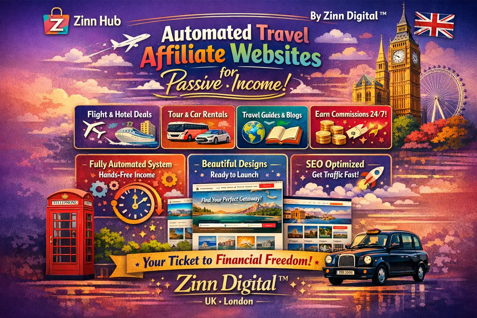 Our team at Zinn Digital ™ is based in London, England, and we're committed to delivering exceptional automated travel affiliate solutions that generate consistent passive income streams.