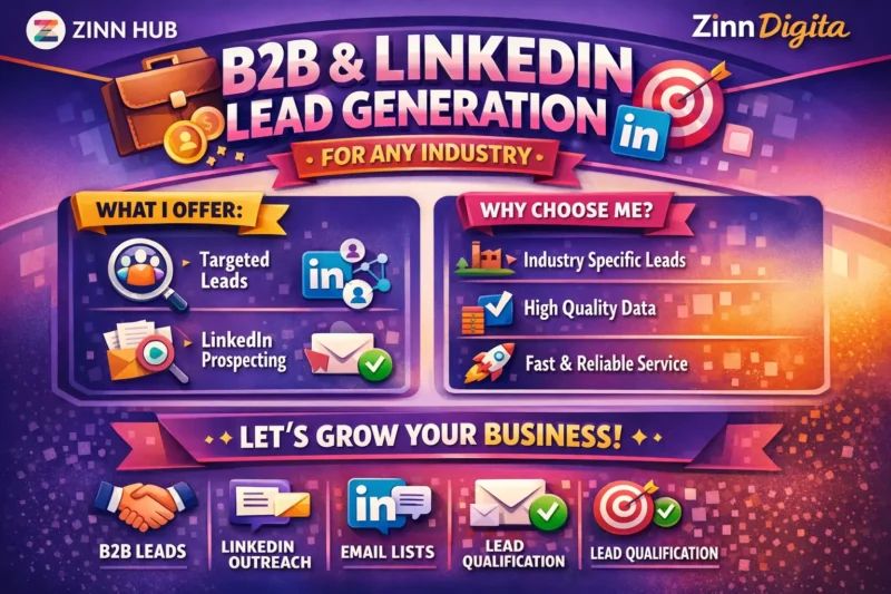 Zinn Digital ™ are b2b lead generation and linkedin lead generation experts for any industry. Based in London, England, we can help you generate b2b leads, linkedin leads, business leads and email lists at an affordable cost.