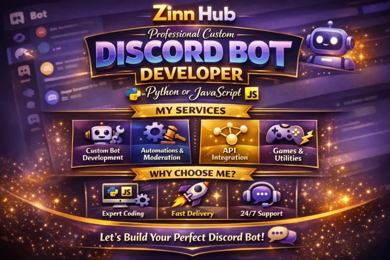 I am Zinn Digital ™, a professional custom Discord bot developer who has created multiple custom Discord bots which serve servers with thousands of members daily.