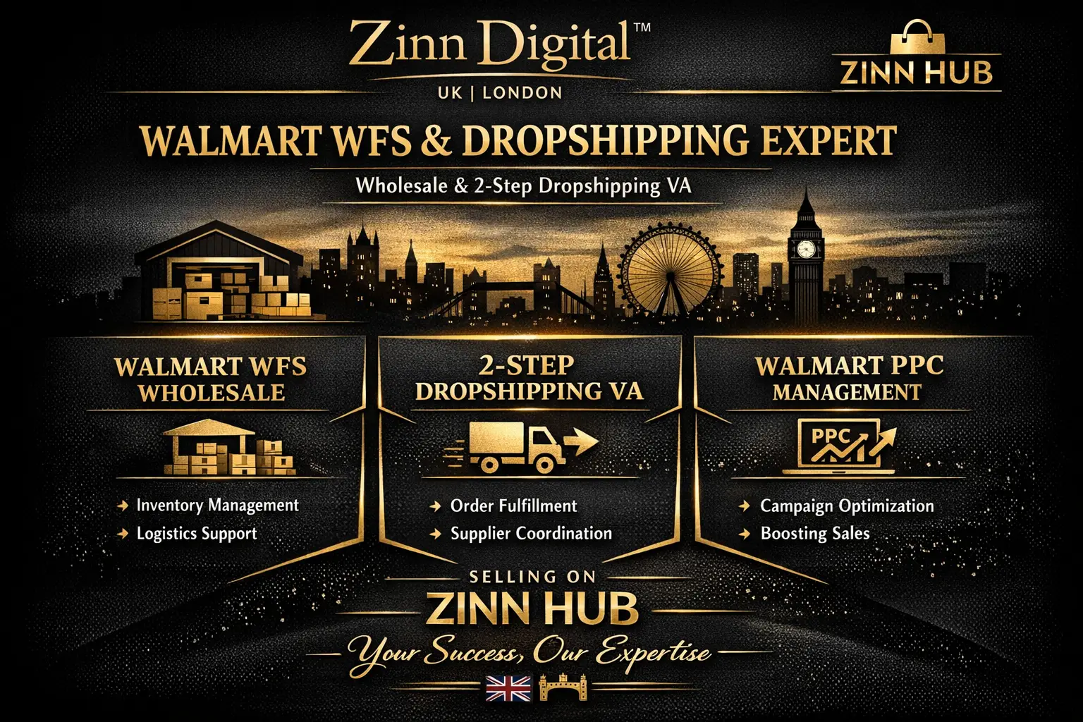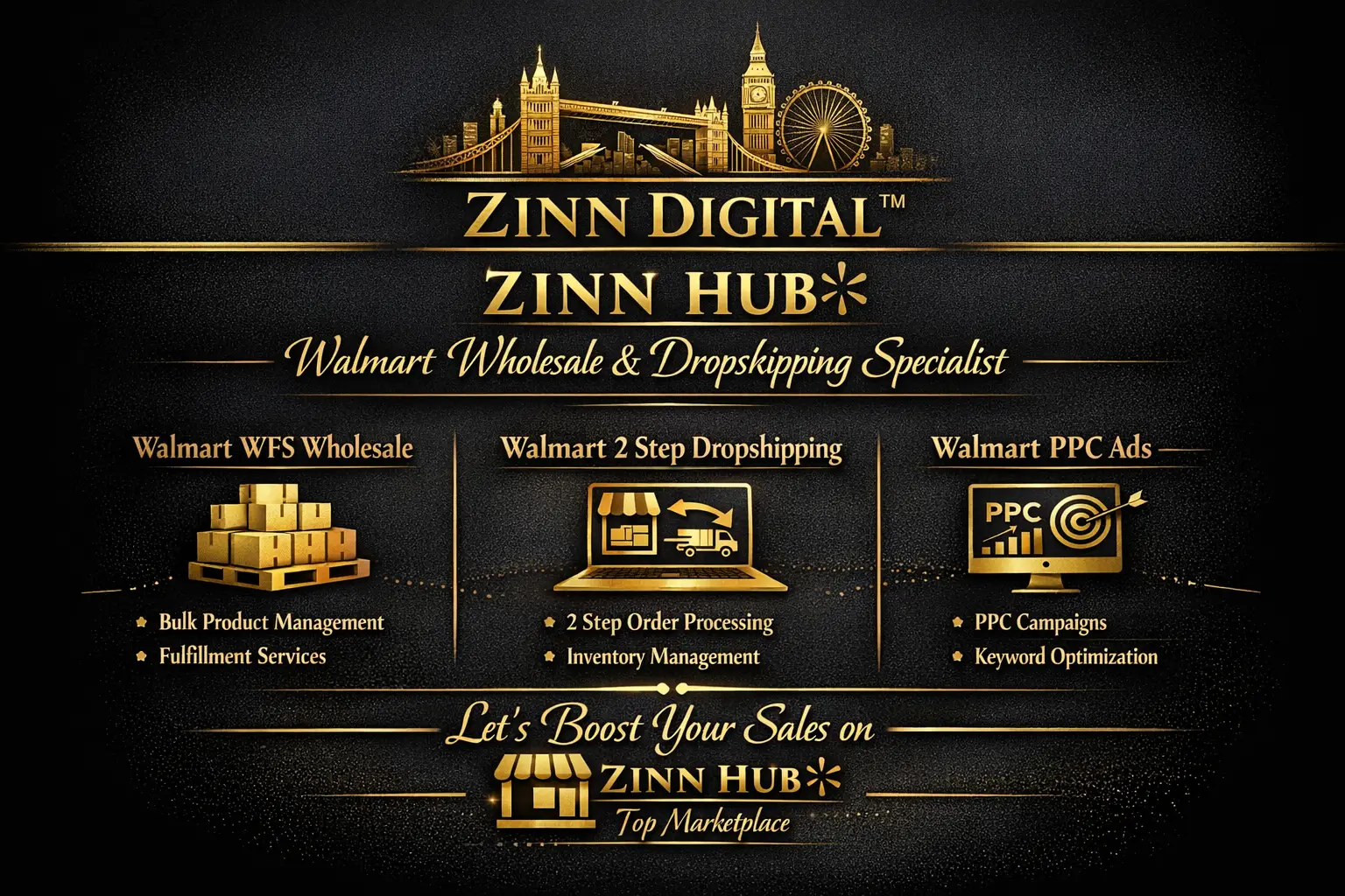 Welcome to Zinn Digital™, your e-commerce partner in London, England with 3 years of specialist expertise managing online stores across Walmart, Amazon, eBay, Shopify, and TikTok Shop platforms.