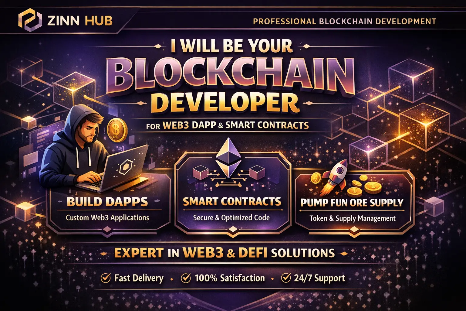 be your blockchain developer for web3 dapp, smart contract pump fun ore supply