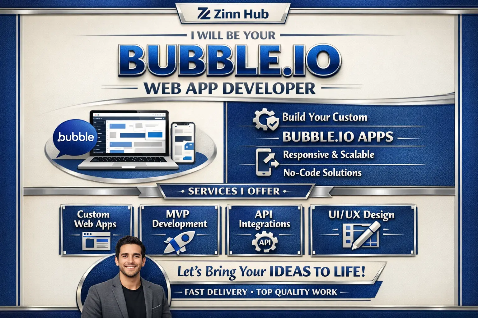 Zinn Digital ™ are professional no-code developers with 2 years' experience building web applications and websites using no-code tools including Bubble, Webflow, and Stripe. Based in London, England, we create responsive app designs with seamless integrations, bug-free functionality, API integration (when required), Stripe payment processing for ecommerce stores, location systems similar to Uber, and all premium features found in professional startups like Facebook, Instagram, Airbnb, and Uber.
