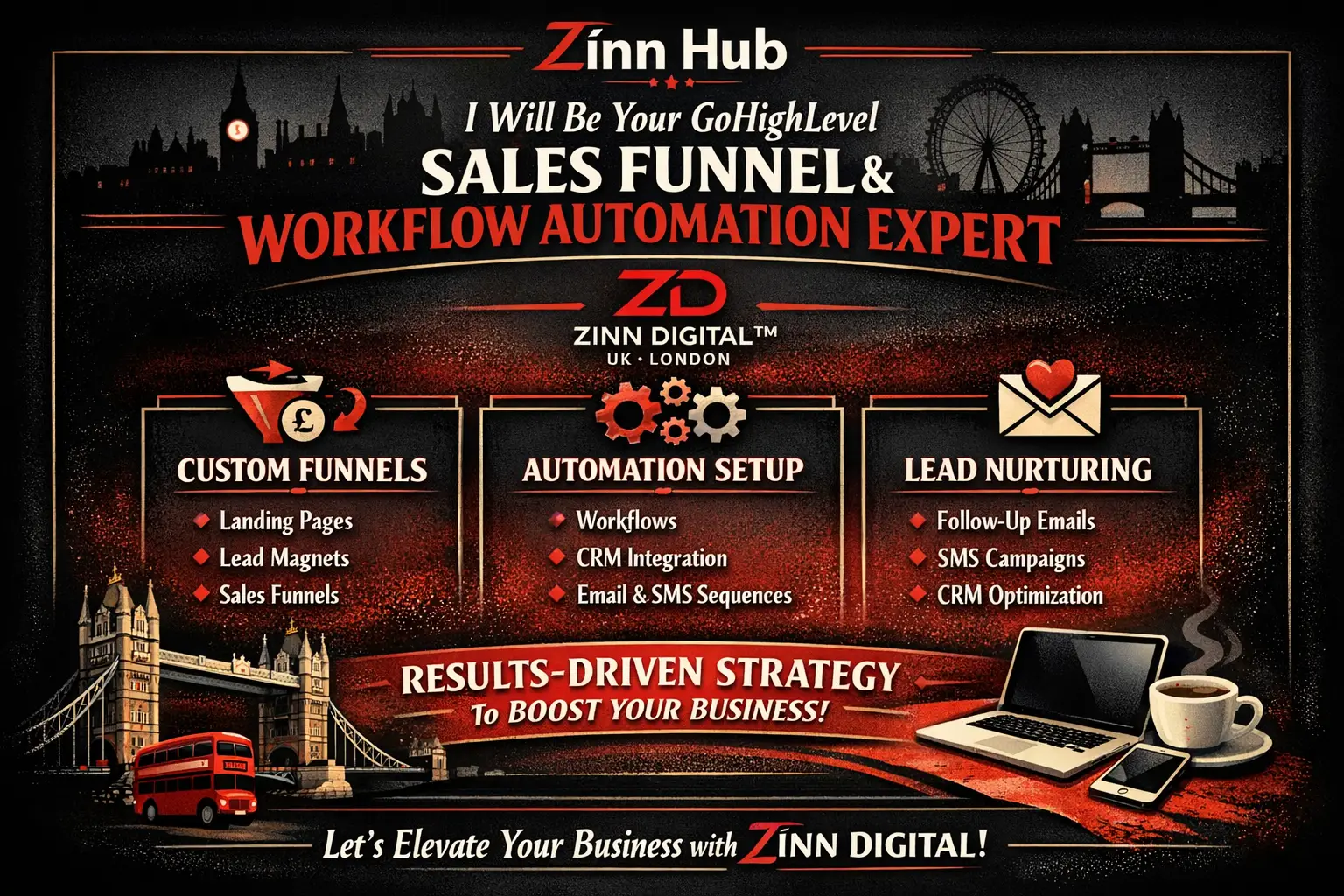 If you're looking for a way to increase your sales and simplify your marketing, Zinn Digital ™ is here to serve you. We specialise in building powerful GoHighLevel funnels and automation that deliver real results.