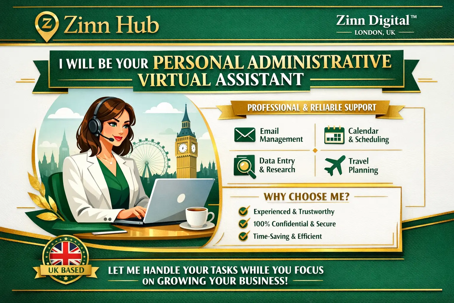 As Zinn Digital ™, I will serve as your dedicated virtual assistant for all administrative requirements. I'm here to support individuals and organisations with their personal and professional tasks, including: