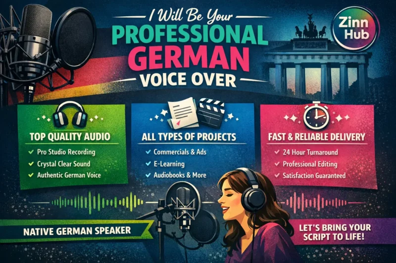 I'm a voice over artist, presenter and dance teacher with more than 15 years of experience. On Zinn Hub I've been privileged to complete more than 2000 projects in e-learning, YouTube videos, audiobooks, commercials, whiteboard videos, podcasts and many more.