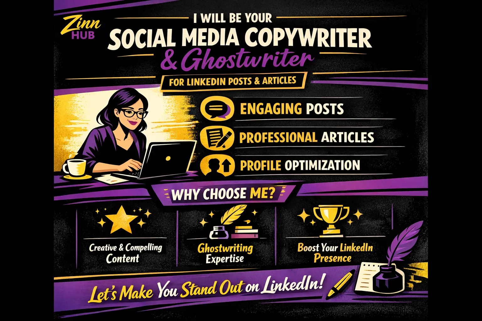 be your social media copywriter and ghostwriter for linkedin posts and articles