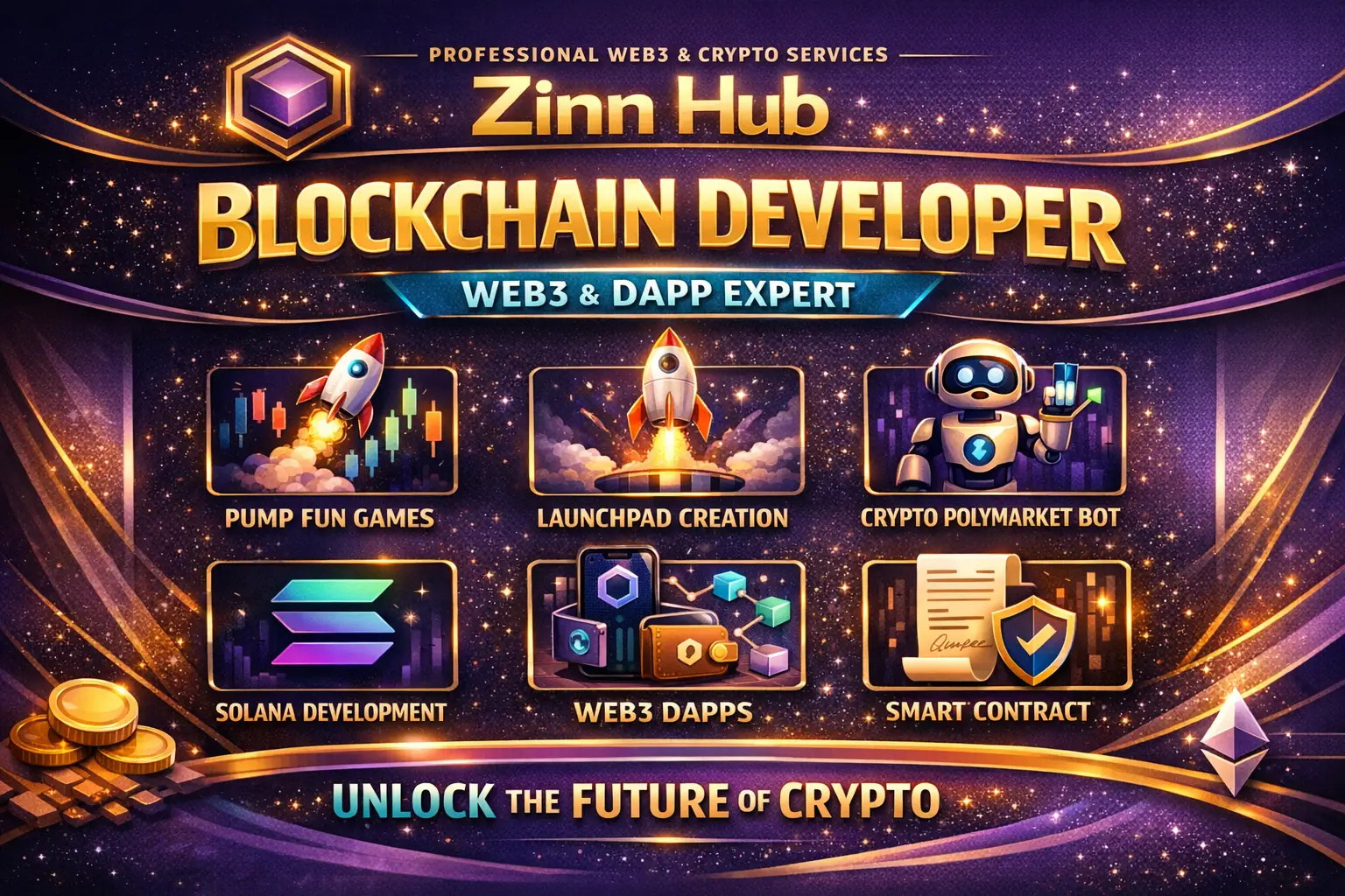 As a professional blockchain developer based in London, England, Zinn Digital ™ specialises in creating powerful, production-ready systems from smart contracts and DEX platforms to crypto bots and token launch systems.