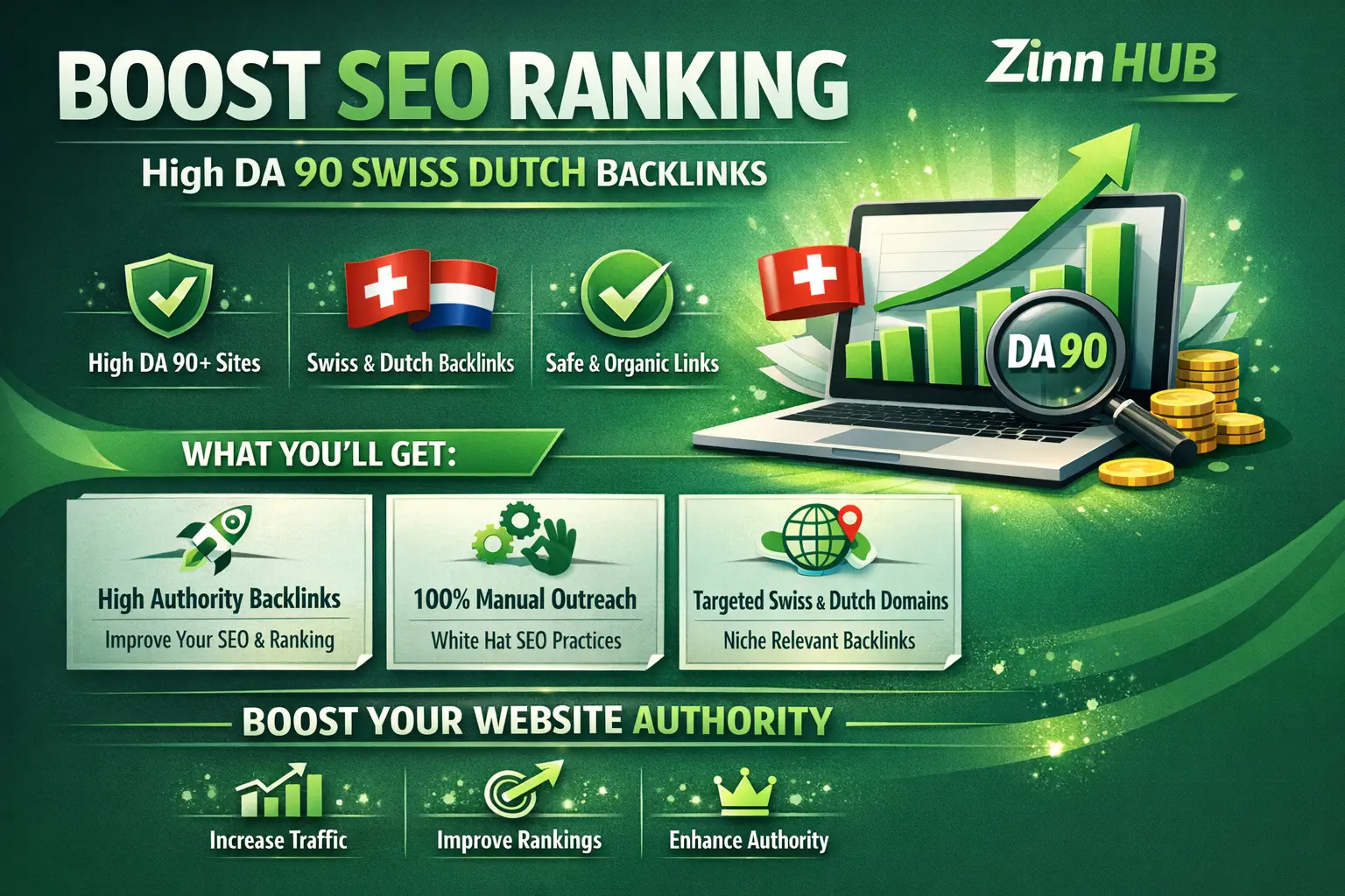 Do you want Google rankings and want to take your website's ranking to new heights in search engines? Look no further! Zinn Digital ™ offers white hat Switzerland and Netherlands SEO services with High DA 90+ Dofollow Swiss and Dutch backlinks to boost your online presence.