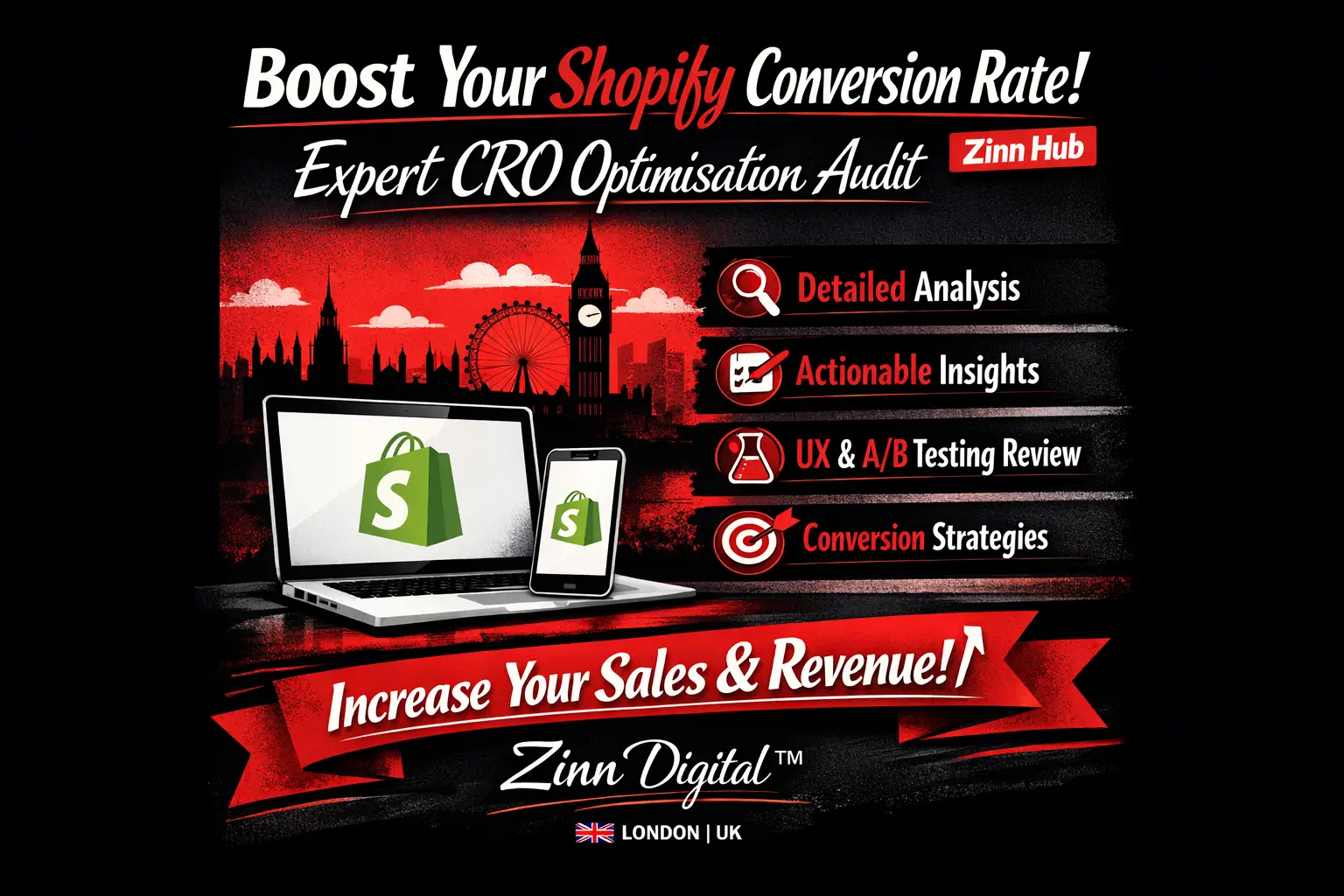 We're Shopify CRO specialists based in London, England who help store owners increase conversion rates, boost sales, and maximise revenue without spending extra on ads. Through our CRO optimisation audit, we'll analyse every detail of your store to identify what's stopping visitors from buying and give you an action plan to fix it.