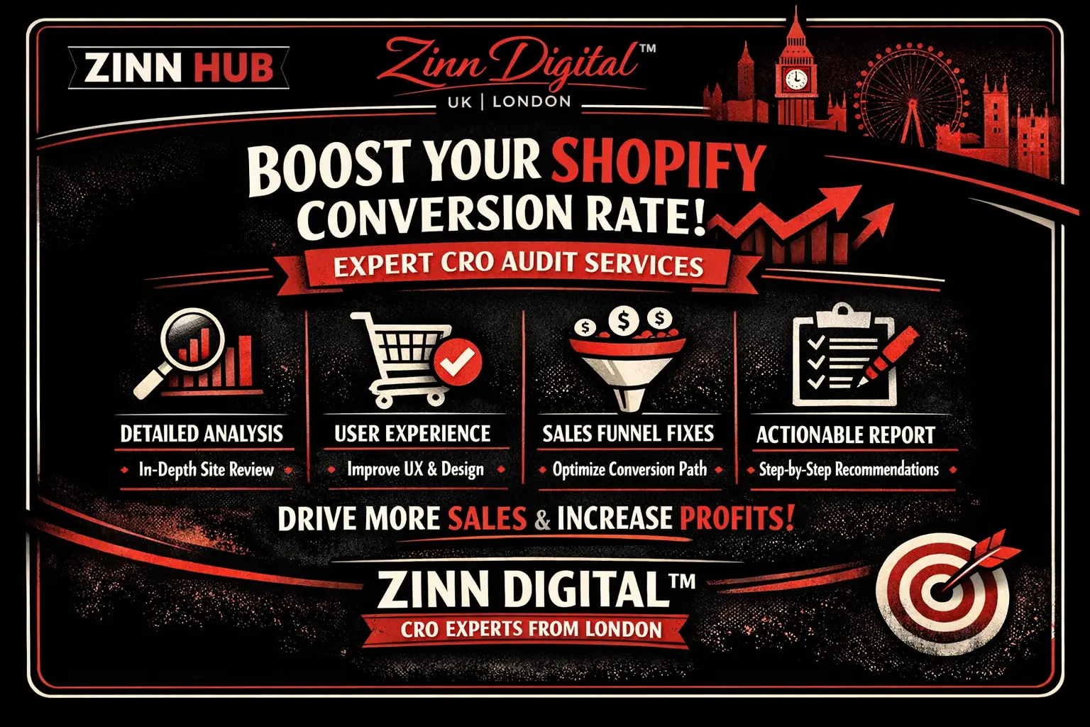 I'm Zinn Digital ™, and I provide a data-driven Shopify Conversion Rate Optimisation (CRO) Audit designed to uncover hidden issues and boost your store's performance.