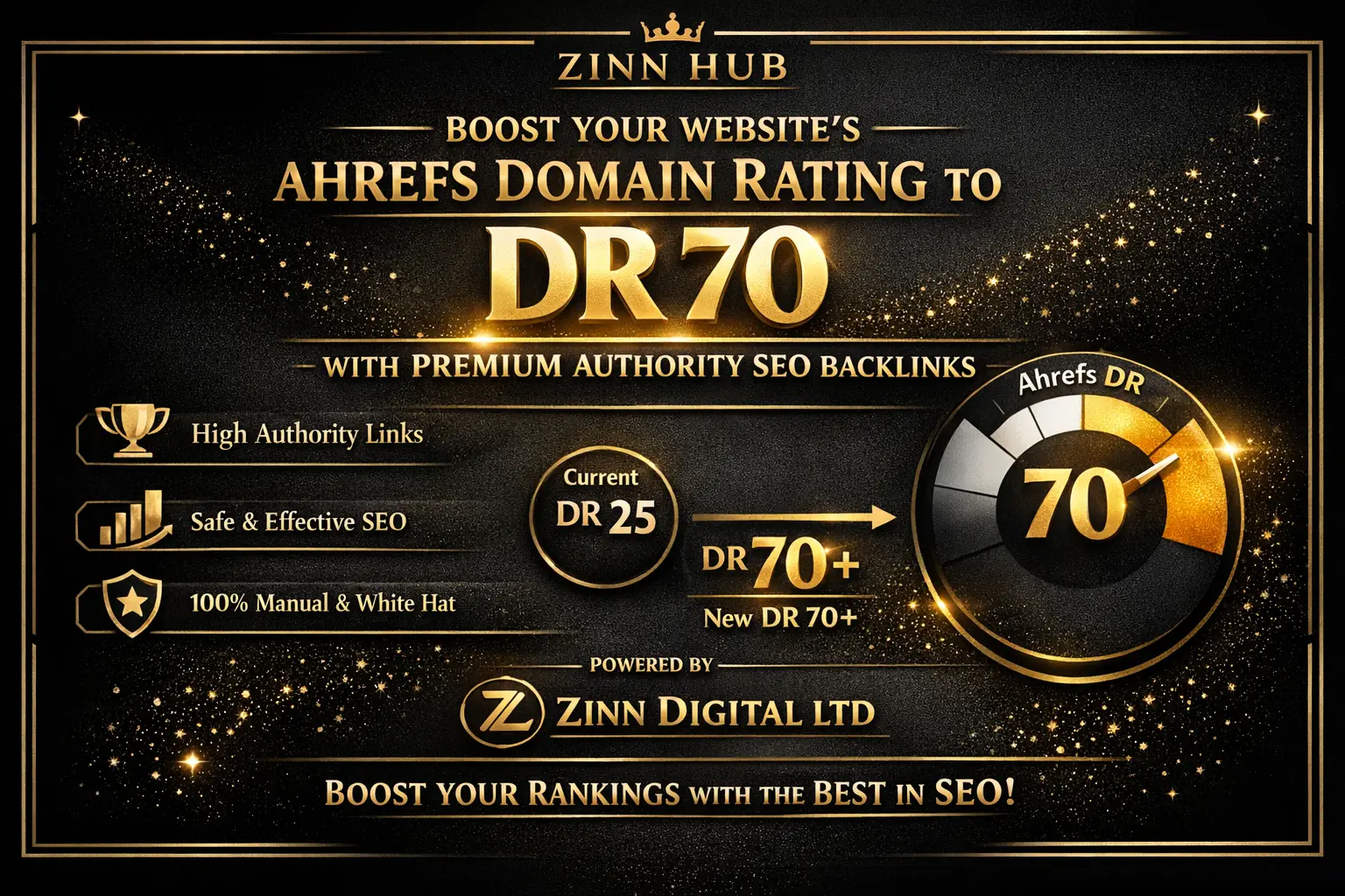 Boost Your Website's Ahrefs Domain Rating to DR 70+ with Premium Authority SEO Backlinks from Zinn Digital™