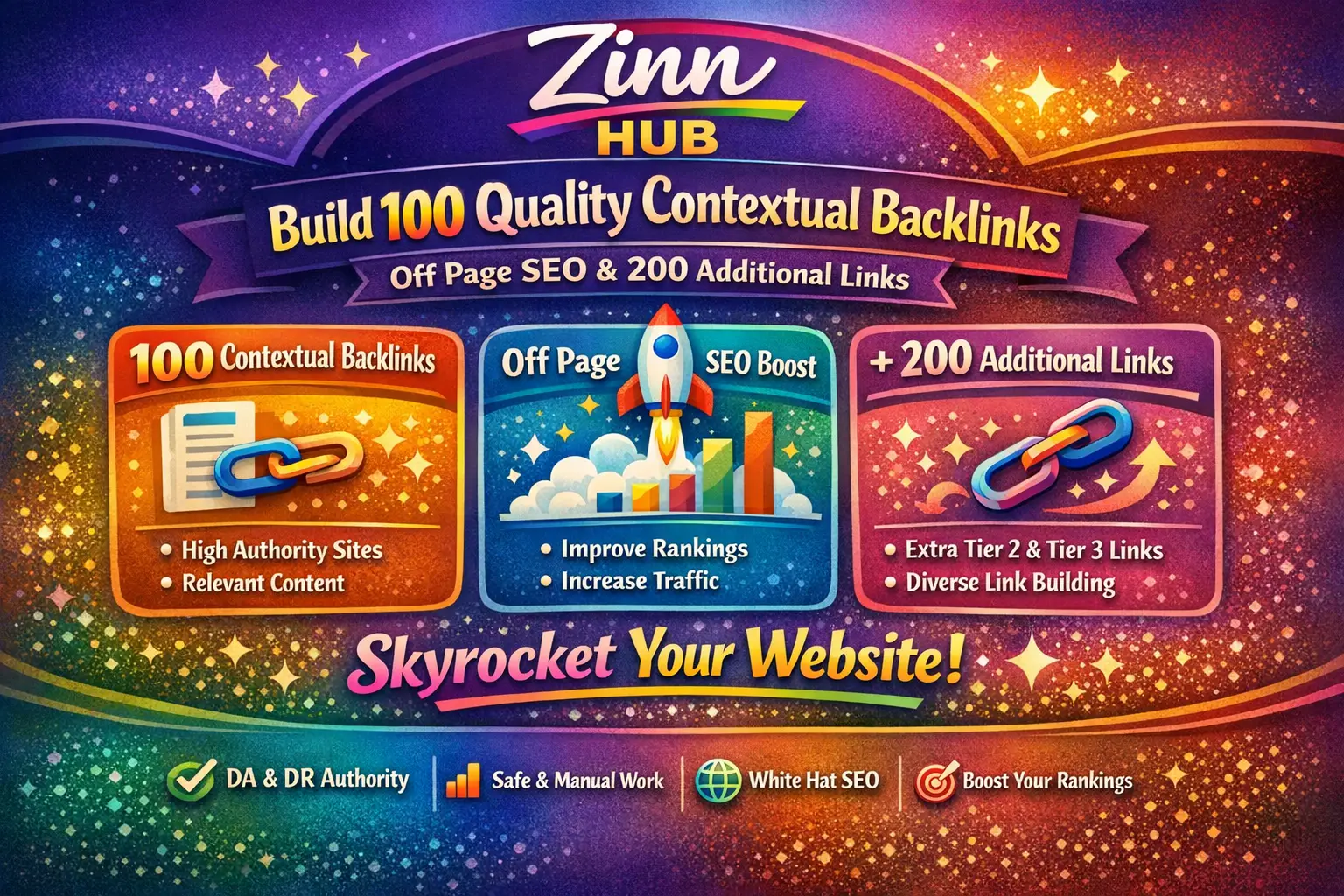 build 100 quality contextual backlinks, off page seo , 200 additional links
