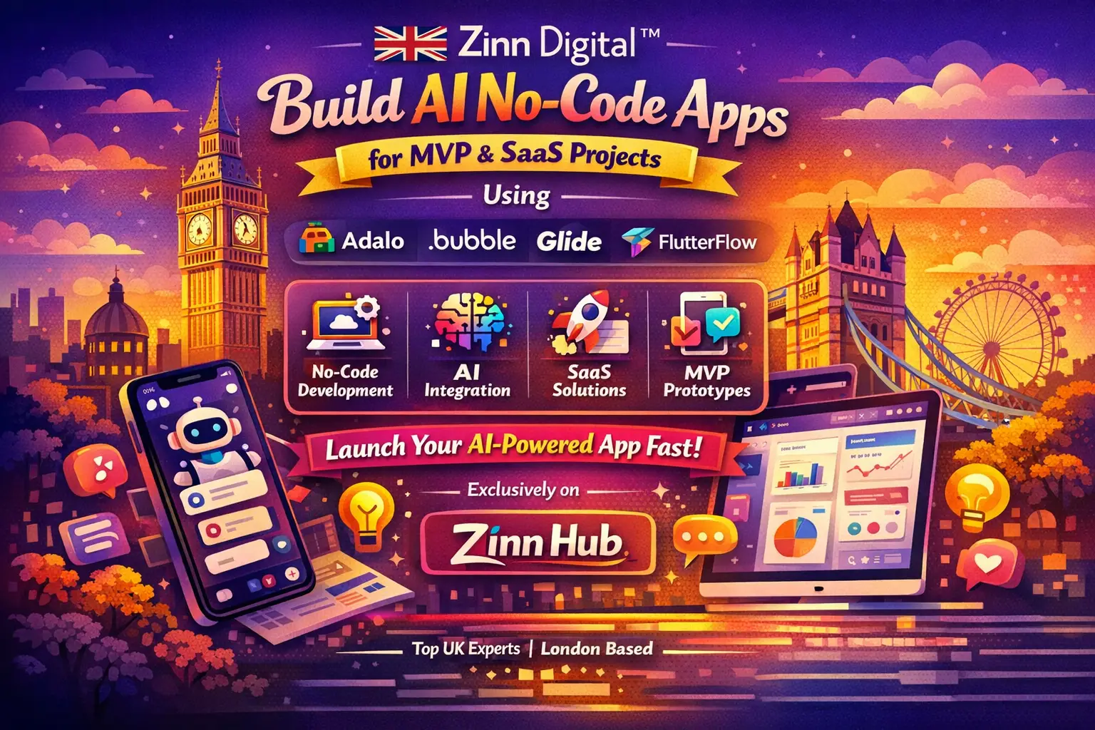 We specialise in building AI-powered, no-code apps using Adalo, Bubble, and Glide so you can launch your idea in days, not weeks.