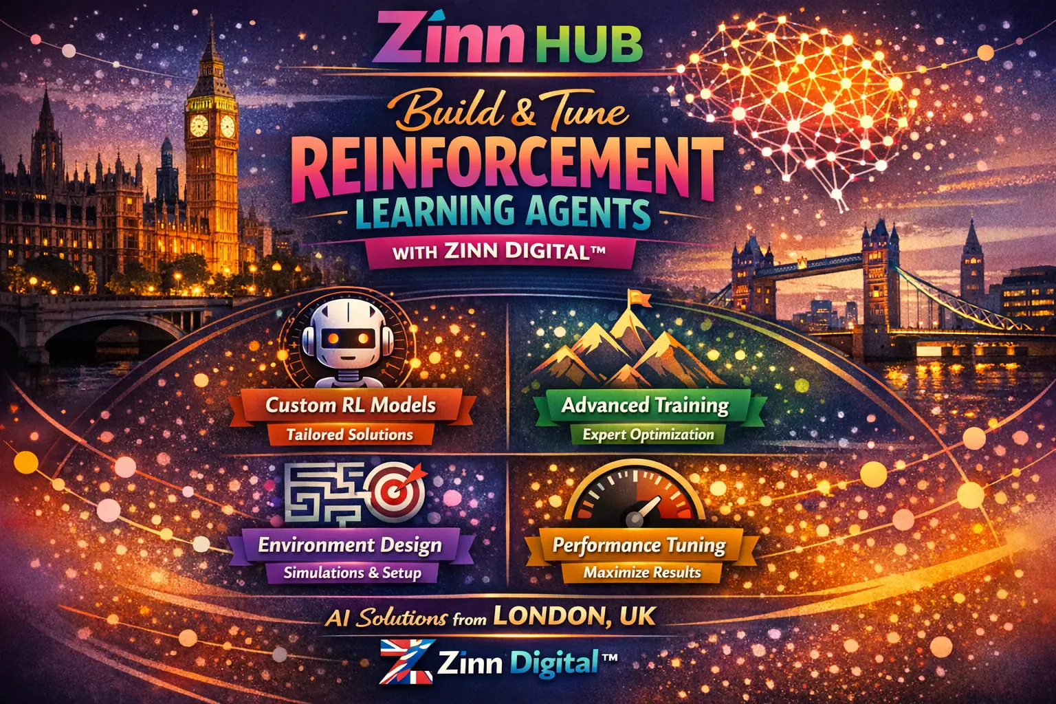 Unlock smarter decisions with Reinforcement Learning. Zinn Digital ™ designs, codes and delivers bespoke RL agents that learn through trial-and-error to optimise trading, resource allocation, process control or any simulation-ready task you have in mind.