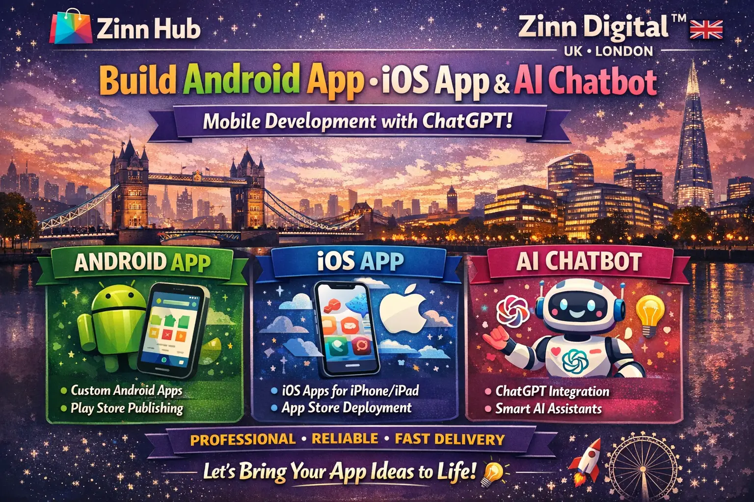We specialise in Android and iOS app development, integrating AI-powered chatbots like ChatGPT to enhance user experience and automation. Whether you need a business app, e-commerce solution, social platform, or AI-powered assistant, we will build a high-performance, scalable, and user-friendly mobile application tailored to your requirements.