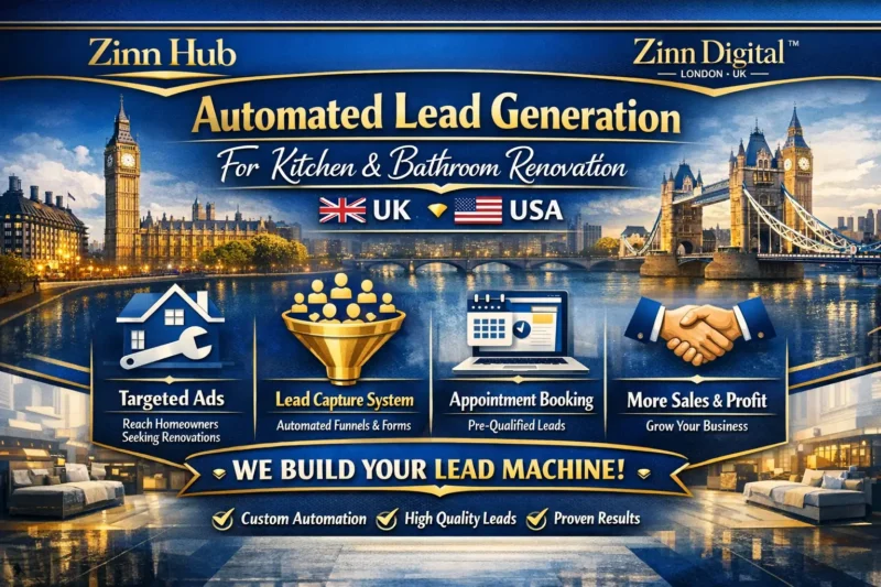 Transform your UK kitchen & bathroom renovation business with our proven automated funnel system that turns your website into a 24/7 appointment-booking machine. No more chasing poor leads or inconsistent revenue!