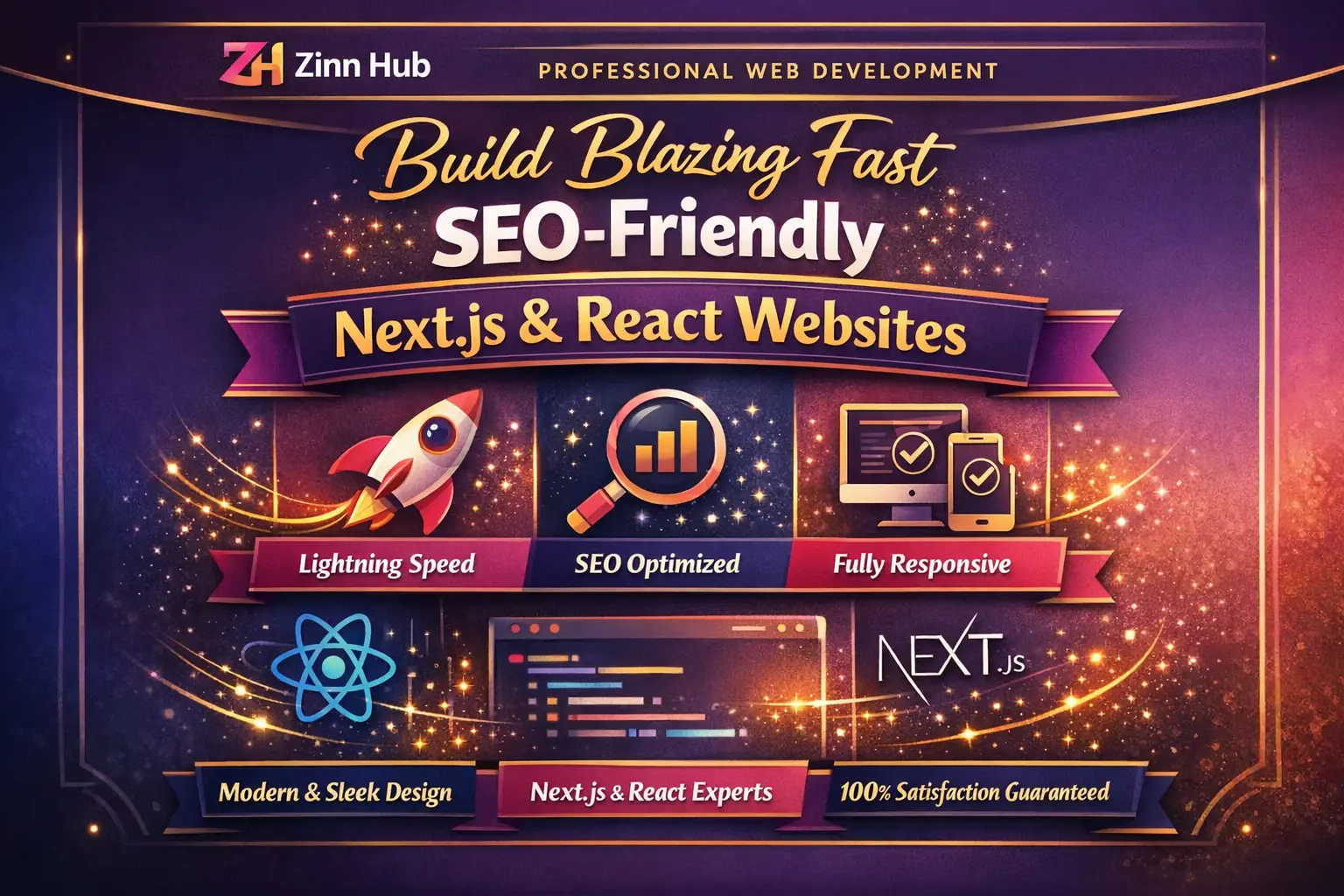 I'm a Level 2 Zinn Hub Developer specialising in Next.js and React.js website development. I craft blazing-fast, scalable, and SEO-friendly websites that help your business stand out and perform at its best.