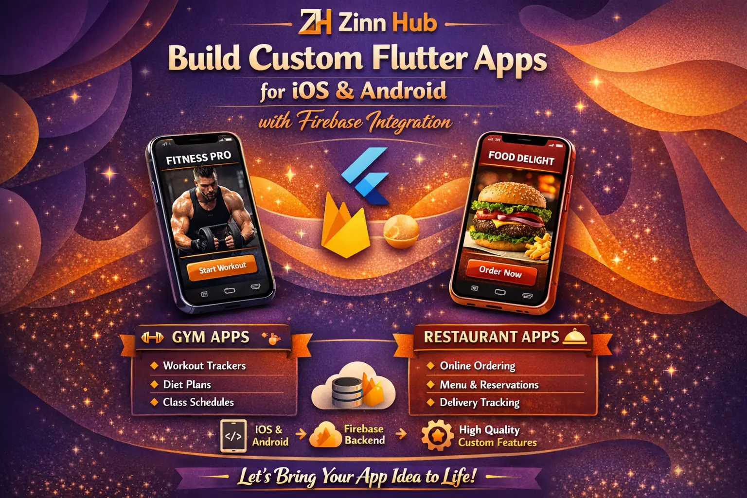 Build custom Flutter apps for iOS, Android with Firebase - gym & restaurant