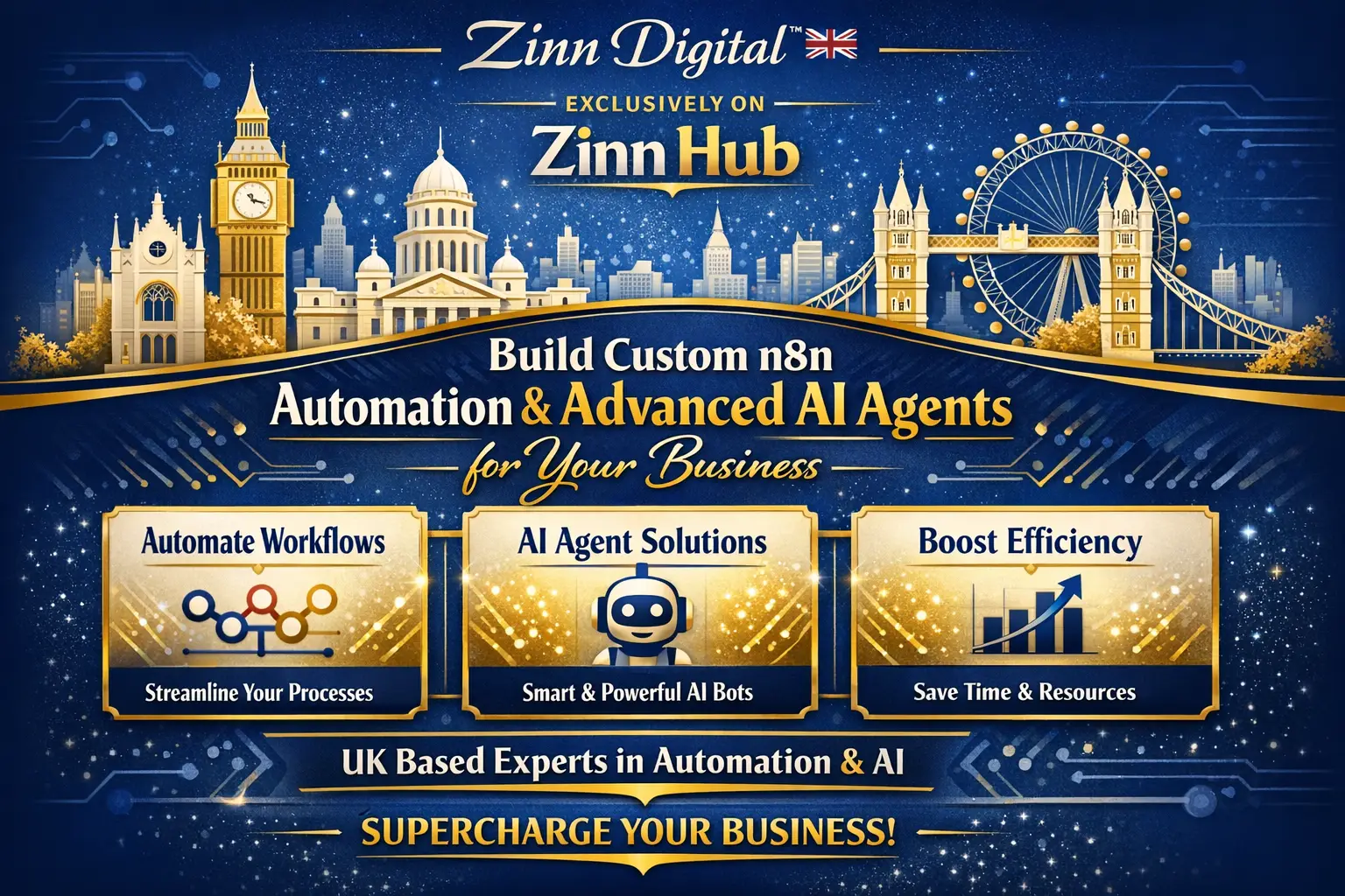 Stop wasting money on high monthly fees from Zapier or Make. Zinn Digital ™ builds **powerful, cost-effective n8n automations** to connect your apps, sync data, and deploy AI agents without per-task fees from our London, England base.**n8n Services**