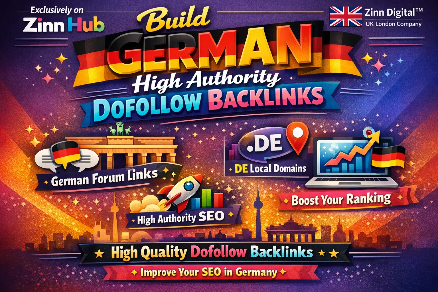 If you are seeking high-authority German backlinks, Zinn Digital ™ provides premium German backlinks for your German website with top-level domains (TLD) backlinks for .de (Germany) country. The metrics of the websites where you receive authority SEO backlinks average MOZ from DA 80 to DA90+.