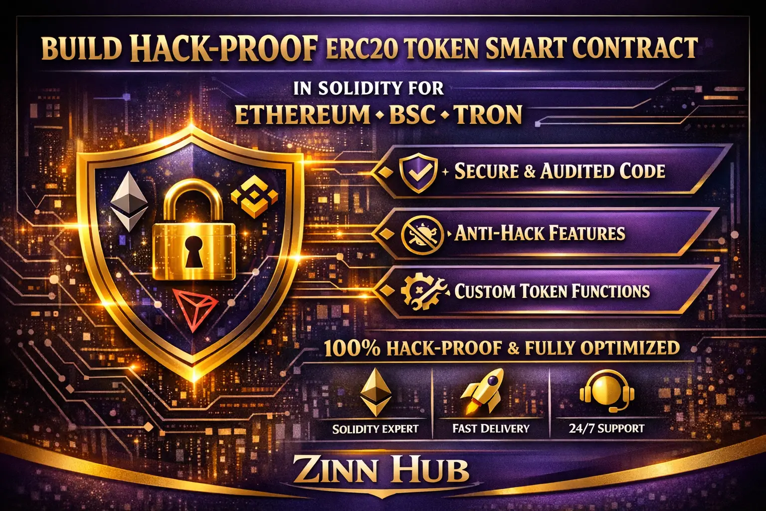 build hack proof erc20 token smart contract in solidity ethereum bsc tron