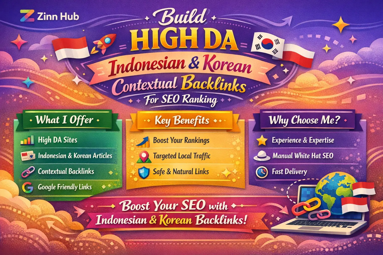 build high da indonesian and korean contextual backlinks for SEO ranking