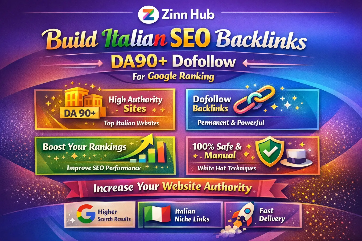 Our goal is to help you rank higher on Google Italy by creating strong Italian backlinks. Based in London, England, Zinn Digital ™ specialises in delivering powerful SEO solutions. If you need backlinks from other countries, feel free to contact us through Zinn Hub for assistance.