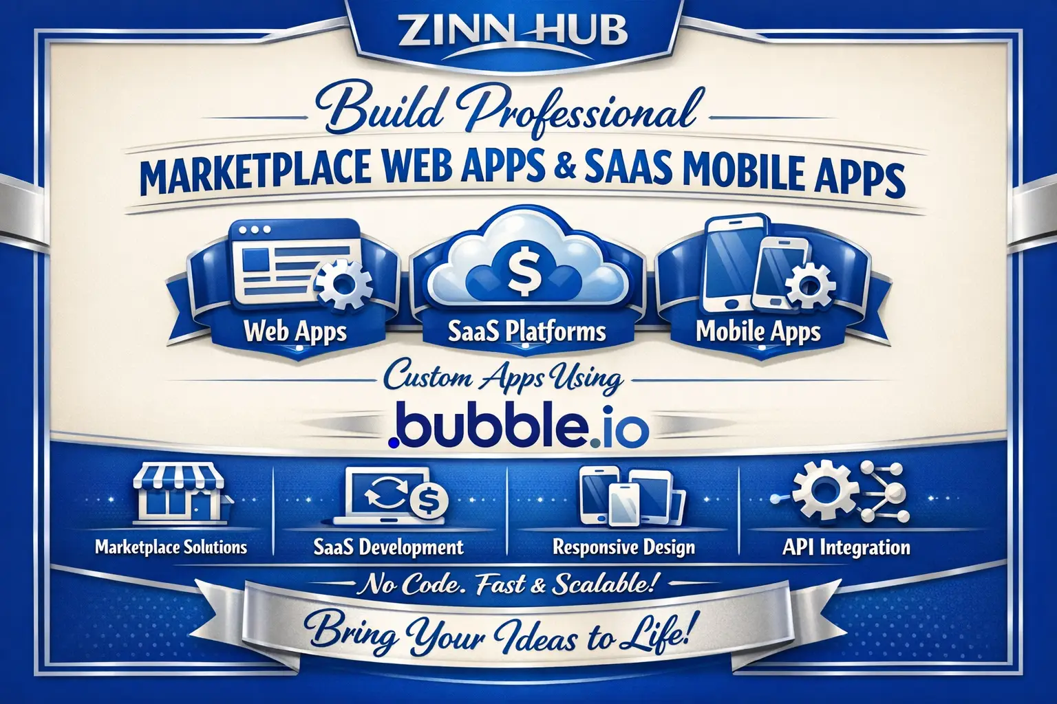 Are you looking to bring your innovative app idea to life? Look no further! Zinn Digital ™ specialises in creating high-quality, professional marketplace web applications, SaaS platforms, mobile apps, and custom applications using Bubble.io. Whether you're a startup or an established business, our London, England-based team can help you build the perfect digital solution tailored to your needs.