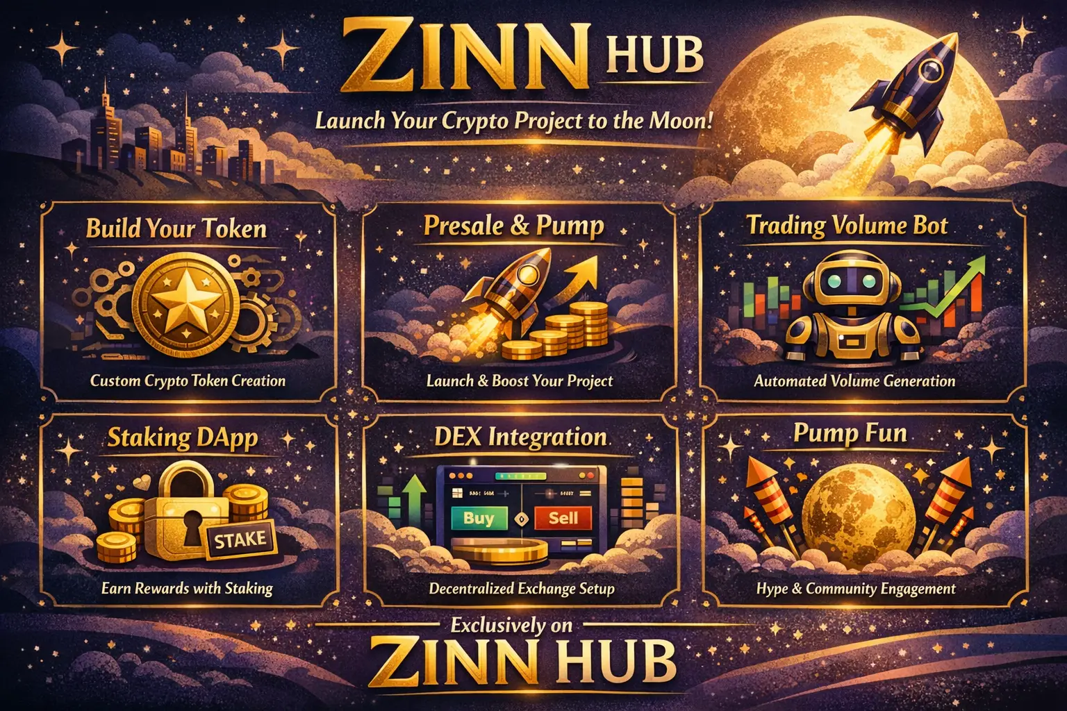 Welcome to our Zinn. Here Zinn Digital ™ will help you launch your token and develop a trading bot. We will also develop a launchpad and various dapps for token launch such as presale website, token launchpad, ICO, pump fun, staking dapp. Based in London, England, we specialise in: