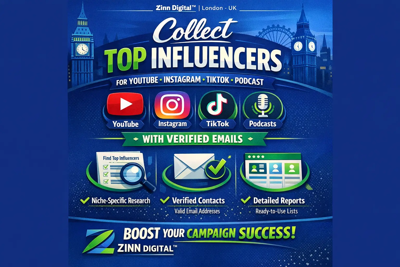 This is Zinn Digital ™ and I am your YouTube and Instagram influencer researcher on Zinn Hub. I have over 6 years of experience in the field of influencer research from YT, Instagram, TikTok, Twitter, Facebook and I'm excited to use this experience to help you grow your business faster. Based in London, England, I will find the influencer according to your criteria like location, niche, followers range, and others. By this, you will get the maximum results for your brand's marketing