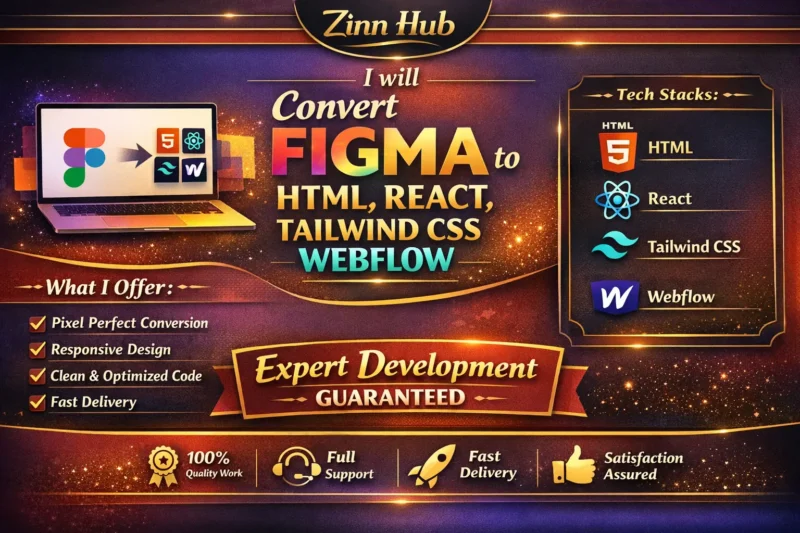 Convert Figma to HTML, React, Tailwind CSS & Webflow - Expert Development