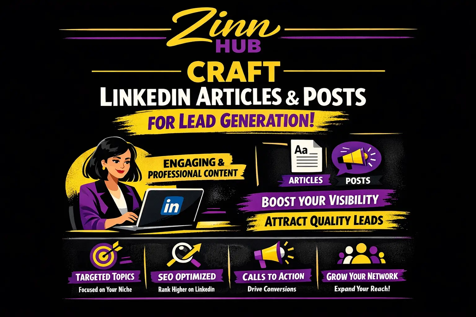 Imagine your LinkedIn profile wasn't just a resume, but a powerful lead generation machine. If you lack the time or strategy to create consistent, high-impact content, Zinn Digital ™ is here to help. We craft LinkedIn articles and posts that establish you as a thought leader and turn your profile into a pipeline for real business opportunities.