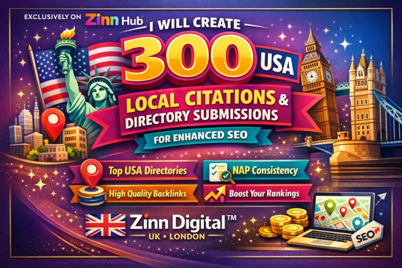 Zinn Digital ™ will create 60/200/300+ Local Citations for your business or website's ranking. Local Citations are crucial for any business because they are online mentions where your business's name, address, and phone number (NAP</strong) are listed. Based in London, England, we will submit your business information to 300 top Citations, ensuring accurate and consistent Local Citations across the web.