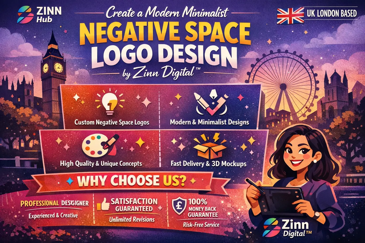 We specialise in designing minimalist negative-space logos that leave a lasting impression on your audience. Our team of professional designers based in London, England ensures every logo is unique and brand-focused.