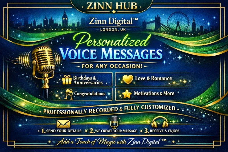 Based in London, England, Zinn Digital ™ uses high-end AI technology to craft bespoke audio messages inspired by the world's most iconic voices and personalities.