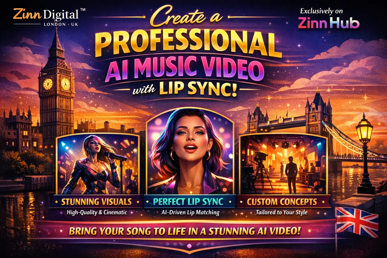Based in London, England, our team specialises in **AI-crafted storytelling and expressive lip-sync performance** designed to match your unique sound and mood. Using the latest tools, we transform your music into a **professional, captivating visual journey**.
