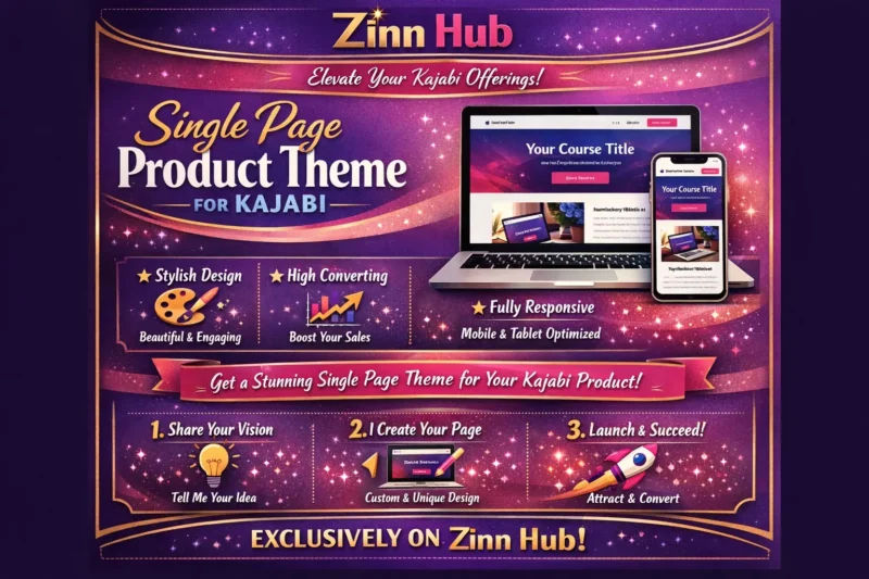Are you looking to elevate your Kajabi site with a professionally designed, responsive theme? Look no further! Based in London, England, Zinn Digital ™ offers a high-quality, customisable Kajabi theme specifically tailored for online courses.