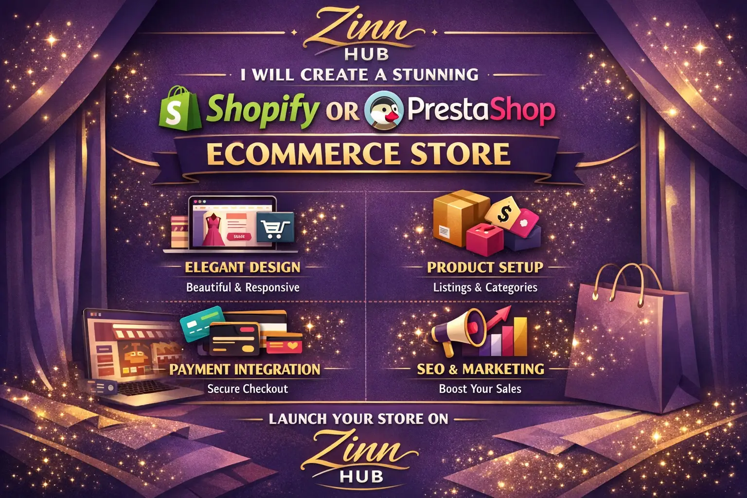 create a stunning shopify or prestashop ecommerce store