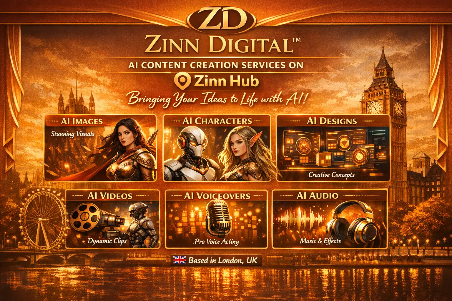 create ai generated images, characters, designs, videos, voiceovers, audio