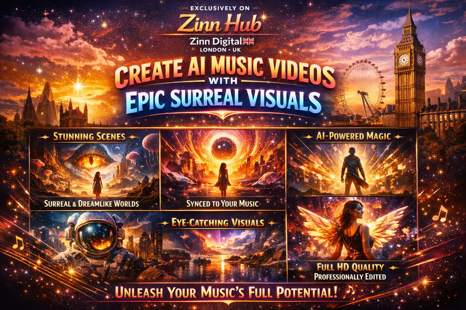 Ready to Get Started: Amplify your song's reach and engage your audience like never before. Our London, England based team at Zinn Digital ™ is ready to create a visual masterpiece for you through Zinn Hub!